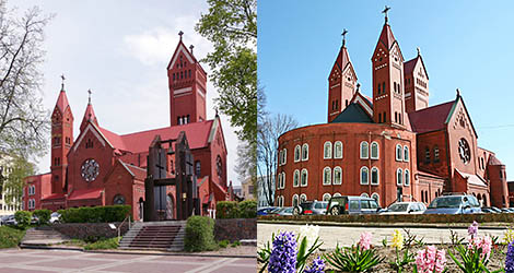 The neo-Gothic Red Church was built in 1910 by order of aristocrat Edward Woyniłłowicz. The church was named and consecrated in memory of Woyniłłowicz's deceased children, Simon and Helen. His daughter Helen saw the future church in her sleep and drafted its sketch.