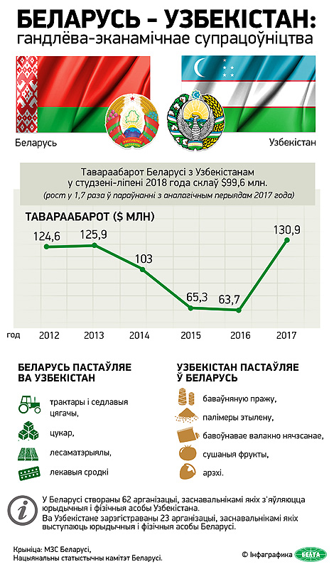 З 2015 года ўзбекскія авіялініі двойчы ў тыдзень выконваюць рэгулярныя рэйсы Ташкент-Мінск-Ташкент.