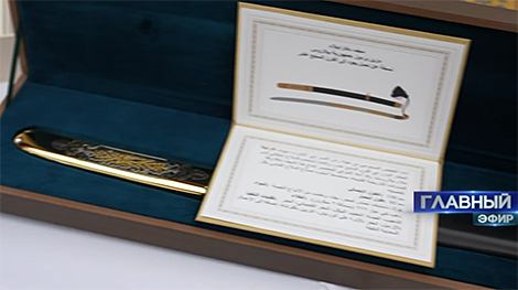 Кіраўнік беларускай дзяржавы прывёз у падарунак свайму алжырскаму калегу копію знакамітага слуцкага пояса, шаблю з беларускай сімволікай, вырабы з лёну і чайны куфэрак з духмяным мёдам і варэннем, а яшчэ - ласункі.