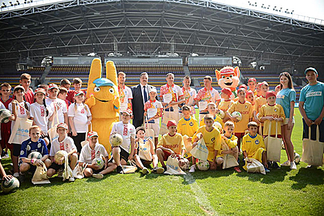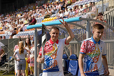 13 чэрвеня, Мінск /Кар. БЕЛТА/. Стадыён "Барысаў-Арэны" сёння раніцай прыняў эстафету агню "Полымя міру" II Еўрапейскіх гульняў, паведамляе карэспандэнт БЕЛТА.