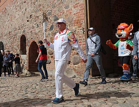 21 мая, Мір /Кар. БЕЛТА/. Эстафету "Полымя міру" сустрэлі сёння ў Мірскім замку, перадае карэспандэнт БЕЛТА.