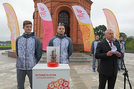 Мэр Магілёва заўважыў, што сёння для жыхароў горада вельмі хвалюючы момант. Паколькі агонь Еўрапейскіх гульняў, пераадолеўшы больш за 7 тыс. км, дабраўся і да горада на Дняпры. Гонару яго пранесці па роднай зямлі ў ліку факеланосцаў удастоены знакамітыя землякі. Факел з агнём Еўрапейскіх гульняў пабывае ва ўсіх знакавых месцах горада. Маршрут эстафеты пракладзены такім чынам, каб максімальна прадэманстраваць самабытнасць абласнога цэнтра, яго багатую гісторыю і галоўныя выдатныя мясціны. "Полымя міру" будзе падарожнічаць па горадзе ўсяго адзін дзень, але аб'яднае тысячы заслужаных людзей горада, - звярнуў увагу мэр. - 25 магіляўчан рыхтуюцца прыняць удзел у маштабных спартыўных спаборніцтвах. Усе яны маюць чэмпіёнскі характар, і няма ніякага сумнення, што сваімі дасягненнямі яны ўпішуць яркую старонку ў гісторыю Еўрапейскіх гульняў".