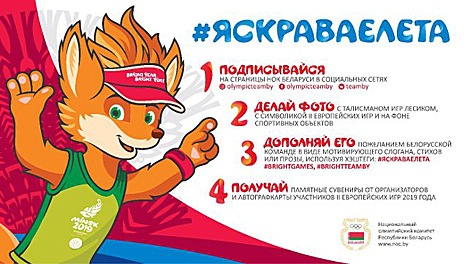 Для ўдзелу ў акцыі неабходна быць падпісчыкам афіцыйных старонак НАК Беларусі ў сацыяльных медыя (адной або некалькіх): "УКантакце", Facebook, Instargam. Зрабіць фота з талісманам гульняў лісянём Лесікам, на фоне спартыўных аб'ектаў або выявы любой сімволікі II Еўрапейскіх гульняў, дапоўніць яго пажаданнямі беларускай камандзе ў выглядзе матывуючага слогана ў вершах ці прозе і апублікаваць, суправадзіўшы запіс хэштэгамі: #яскраваелета, #brightgames, #brightteamby.