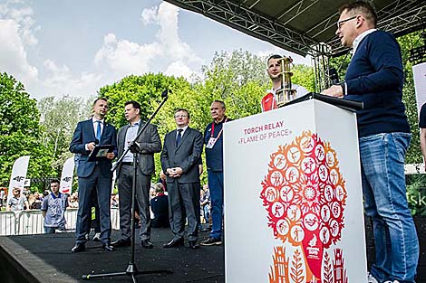 Як планавалася, адным з галоўных элементаў алімпійскага пікніка стала цырымонія дастаўкі ў час эстафеты ад Нацыянальнага алімпійскага цэнтра да месца правядзення пікніка агню II Еўрапейскіх гульняў, які гасцяваў тут з 11 мая, калі эстафета агню "Полымя міру" наведала Варшаву па дарозе з Італіі ў Беларусь. Пад апладысменты публікі даставіла агонь на сцэну двухразовая алімпійская чэмпіёнка ў кіданні молата Аніта Уладарчык.