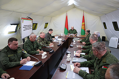 Пры гэтым Аляксандр Лукашэнка даручыў актуалізаваць задачы тэрытарыяльнай абароны з улікам сучасных умоў вядзення баявых дзеянняў. "І народнае апалчэнне - каб чалавек, які не трапляе ў армію, але добра валодае зброяй, мог абараніць дом. Сістэма ў нас вызначана. Мы яе правяраем: дзяржсакратару (Савета бяспекі. - Заўвага БЕЛТА) задача пастаўлена жалезна, каб усё было праверана не для паказухі, пачынаючы ад народнага апалчэння да Узброеных Сіл. Гэта значыць сістэма абароны нашай краіны ў нас створана", - сказаў галоўнакамандуючы.