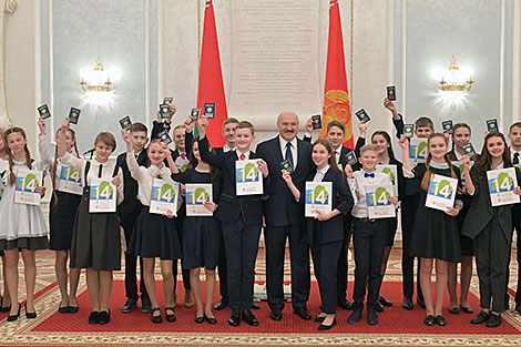 Аляксандр Лукашэнка асабіста ўручыў кожнаму навучэнцу пашпарт, адзначыўшы, што атрыманне гэтага дакумента ва ўсе часы ўспрымалася як першы крок у дарослае жыццё.