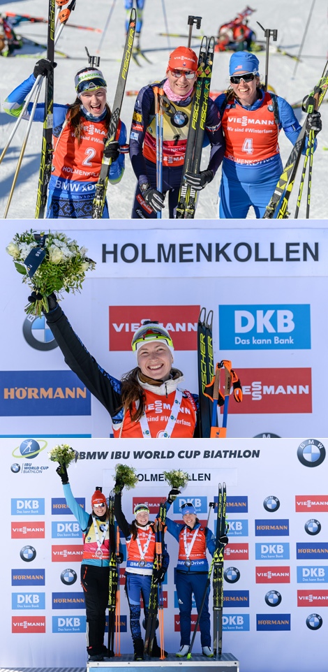 18 сакавіка, Мінск /Кар. БЕЛТА/. Беларуска Дар'я Домрачава заняла першае месца ў гонцы праследавання на восьмым этапе Кубка свету па біятлоне ў нарвежскім Холменколене, паведамляе карэспандэнт БЕЛТА.