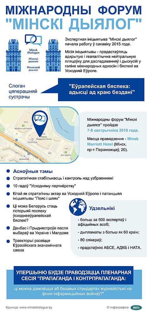 7 кастрычніка, Мінск /Кар. БЕЛТА/. Форум "Мінскага дыялогу" на тэму "Еўрапейская бяспека: адысці ад краю бездані" адкрываецца сёння ў беларускай сталіцы, паведамляе БЕЛТА.