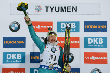 26 сакавіка, Мінск /Кар. БЕЛТА/. Прэзідэнт Беларусі Аляксандр Лукашэнка павіншаваў біятланістку Дар'ю Домрачаву з бліскучым завяршэннем сезона 2017/2018 года - залатым медалём у апошнім старце этапу Кубка свету ў Цюмені. Аб гэтым БЕЛТА паведамілі ў прэс-службе беларускага лідара.