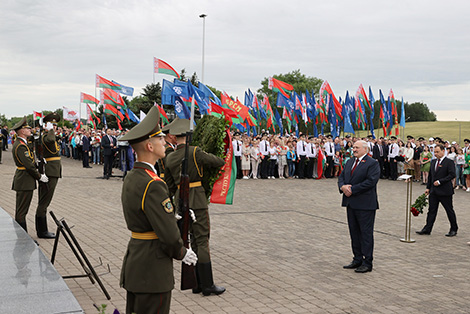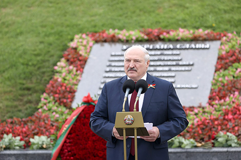 "Мы, сучаснае пакаленне, помнім, што героі Вялікай Айчыннай вайны нам падарылі жыццё, і стараемся пражыць яго дастойна іх памяці, памяці тых, хто стварыў гэты помнік. Тых, хто адстаяў страчаныя ў 90-я традыцыі і аднавіў мемарыяльны комплекс, надаўшы яму сучасны выгляд", - адзначыў беларускі лідар.