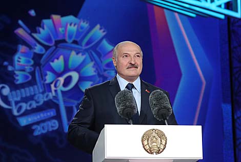 Ён канстатаваў, што творчая атмасфера, якая пануе ў Віцебску, вось ужо паўстагоддзя натхняе на стварэнне яркіх разнапланавых фестываляў. Многія з іх і сёння збіраюць самых таленавітых музыкантаў, харэографаў, дызайнераў і мастакоў з самых розных краін. "Мы захавалі статус Віцебска, горада з багатымі культурнымі традыцыямі, падтрымаўшы "Славянскі базар" на дзяржаўным узроўні. У свой час мы проста ўратавалі "Славянскі базар" ад знішчэння пасля распаду Савецкага Саюза. І не дарэмна - штогод мы прымаем сяброў нашага фестывалю з усіх куткоў зямнога шара. Славянскі свет, які, напэўна, многія недзе на Захадзе некалі не ўспрымалі ўсур'ёз, стаў ядром, цэнтрам прыцяжэння многіх народаў. Сёння ў Віцебску мы ўжо чуем мову прадстаўнікоў Індыі, Кітая, Кубы, Ізраіля, Злучаных Штатаў Амерыкі. Мы ім рады. Традыцыйна ў ліпеньскія дні Віцебск уяўляе сабой прыклад самага гасціннага і музычнага горада", - заявіў кіраўнік дзяржавы.