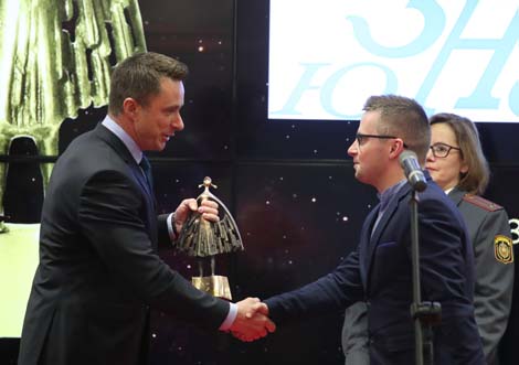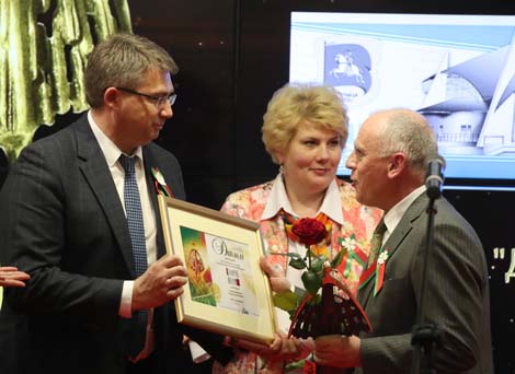 Статуэтку "Залатая Літара" ўручыў генеральнаму дырэктару БЕЛТА Ірыне Акуловіч міністр інфармацыі Беларусі Аляксандр Карлюкевіч. Прымаючы віншаванні, кіраўнік агенцтва адзначыла, што ў рабоце над праектам быў заняты вялікі калектыў. "Гэта людзі, якія любяць сваю прафесію, любяць Мінск, сваю краіну. Гэта людзі, якія любяць жыццё, без любові ж нічога не бывае", - сказала яна. Ірына Акуловіч падзякавала за падтрымку, давер і заклікала калег і далей пісаць гісторыю любімай краіны.