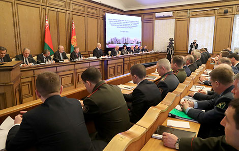2 сакавіка, Мінск /Міхаіл Маціеўскі - БЕЛТА/. Прэзідэнт Беларусі Аляксандр Лукашэнка сёння заслухоўвае справаздачу ўрада, Нацыянальнага банка, аблвыканкамаў і Мінскага гарвыканкама аб выніках работы эканомікі за 2017 год і задачах па забеспячэнні ўстойлівага эканамічнага росту. Мерапрыемства праходзіць у Доме ўрада, перадае карэспандэнт БЕЛТА.