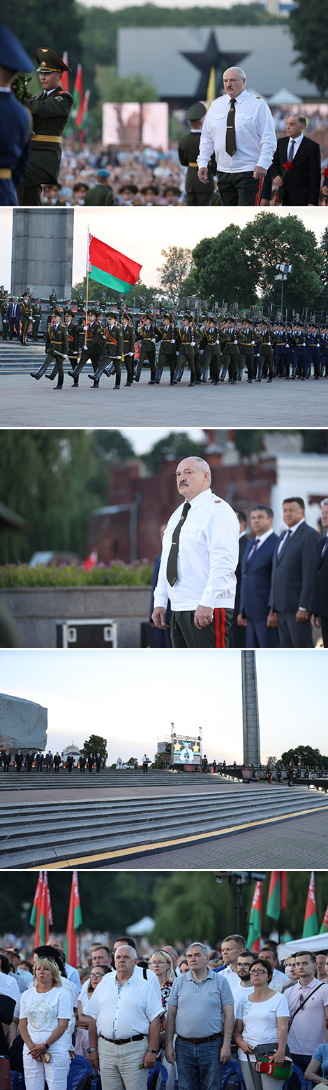 "Сёння мы славім подзвіг нашага народа, ушаноўваем ветэранаў і смуткуем аб загінулых, схіляем галовы перад героямі і бязвіннымі ахвярамі вайны. Помніце: гэта памяць свяшчэнная і непарушная, і пакуль яна ёсць у нас, мы будзем жыць, жыць заўсёды дастойна, не на каленях. Так ёсць, так павінна быць і так будзе заўсёды!" - рэзюмаваў кіраўнік дзяржавы.