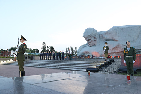 22 чэрвеня, Брэст /Кар. БЕЛТА/. Беларусы родную зямлю і суверэнітэт нікому не аддадуць. Аб гэтым Прэзідэнт Беларусі Аляксандр Лукашэнка заявіў 22 чэрвеня на цырымоніі ўскладання вянкоў у мемарыяльным комплексе "Брэсцкая крэпасць-герой", перадае карэспандэнт БЕЛТА.