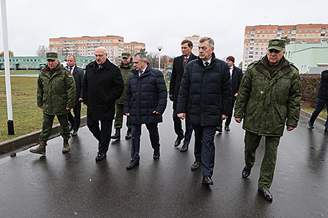 17 лістапада, Гомель /Кар. БЕЛТА/. Прэзідэнт Беларусі Аляксандр Лукашэнка ў Гомелі азнаёміўся з работай 1868-й артылерыйскай базы ўзбраення, перадае карэспандэнт БЕЛТА.