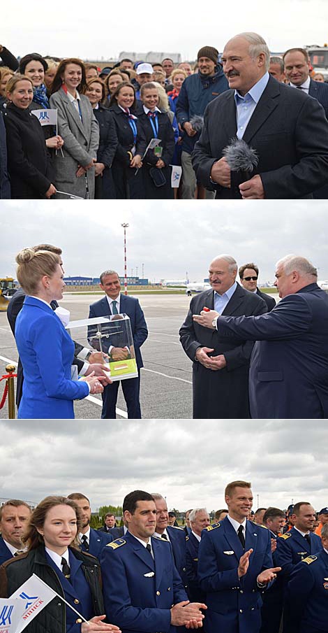 У гонар адкрыцця другой узлётна-пасадачнай паласы ад работнікаў аэрапорта кіраўніку дзяржавы паднеслі макет самалёта Boeing 767 300ER - борта нумар адзін.