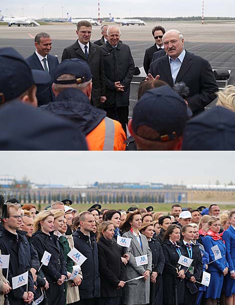 Прэзідэнт паразмаўляў з працоўнымі калектывамі, падзякаваўшы ім за ўклад у будаўніцтва новай паласы. Аляксандр Лукашэнка пацікавіўся ўмовамі іх работы, памерамі заработнай платы. Ён адзначыў, што з павелічэннем пасажырапатоку будзе і расці зарплата ў работнікаў аэрапорта. "Але галоўнае, каб было стабільна. Як толькі будзе нестабільна - да нас ніхто не прыедзе. Вось гэта трэба помніць", - дадаў кіраўнік дзяржавы.