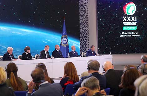 Кіраўнік дзяржавы прызнаўся, што асабіста вельмі чакаў гэтага мерапрыемства. У Беларусі да яго рыхтаваліся вельмі сур'ёзна. "Накіроўваючыся да вас на гэты вялікі сход, я падумаў, што яшчэ, напэўна, ніколі не толькі ў гэтай зале, але і ў Мінску не было столькі герояў. Дазвольце мне ад імя беларускага народа вітаць на гэтым кангрэсе вас, людзей гераічных, якія здзейснілі подзвігі ў жыцці, вучоных, якія забяспечвалі гэтыя палёты і займаліся развіццём касмічнай навукі", - сказаў Аляксандр Лукашэнка.