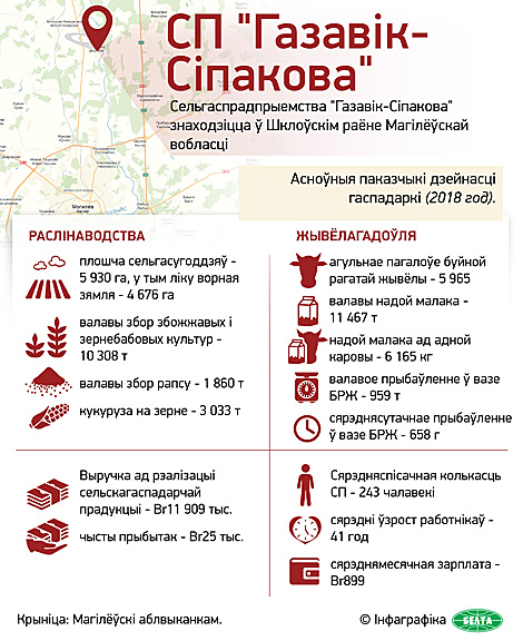 Дырэктар "Газавіка-Сіпакова" Вадзім Гарбіна расказаў, што прадпрыемства займаецца вытворчасцю мяса-малочнай прадукцыі і мае намер пашыраць гэты напрамак. Праз год-два тут плануюць вырабляць рапсавы алей, пакуль гэту культуру толькі вырошчваюць і затым прадаюць іншым гаспадаркам.