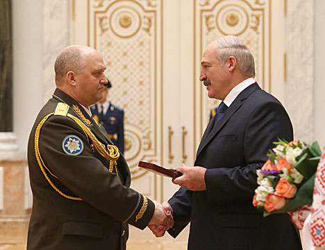28 снежня, Мінск /Святлана Саўко - БЕЛТА/. Дабрабыт Беларусі складваецца з поспехаў людзей, якія не адступаюць перад праблемамі. Аб гэтым сёння заявіў Прэзідэнт Аляксандр Лукашэнка на цырымоніі ўручэння дзяржаўных узнагарод, перадае карэспандэнт БЕЛТА.