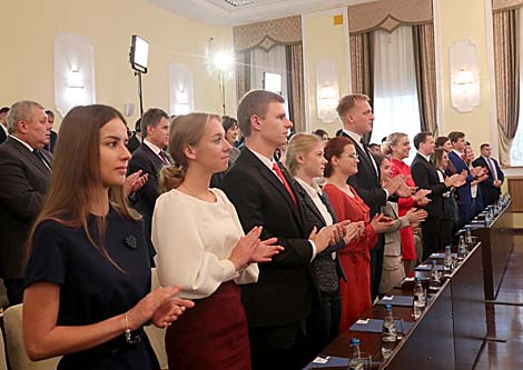"Ёсць яшчэ тэма, якая патрабуе ўвагі дзяржавы, і яна непакоіць, - гэта імкненне маладых людзей атрымаць вышэйшую адукацыю за мяжой", - сказаў Аляксандр Лукашэнка.