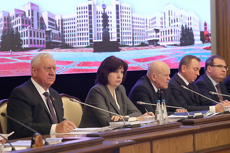 2 сакавіка, Мінск /Міхаіл Маціеўскі - БЕЛТА/. Валавы ўнутраны прадукт Беларусі ў наступнай пяцігодцы павінен скласці $100 млрд. Такую задачу Прэзідэнт Беларусі Аляксандр Лукашэнка паставіў сёння, заслухоўваючы справаздачу ўрада, Нацыянальнага банка, аблвыканкамаў і Мінскага гарвыканкама аб выніках работы эканомікі за 2017 год і задачах па забеспячэнні ўстойлівага эканамічнага росту, перадае карэспандэнт БЕЛТА.