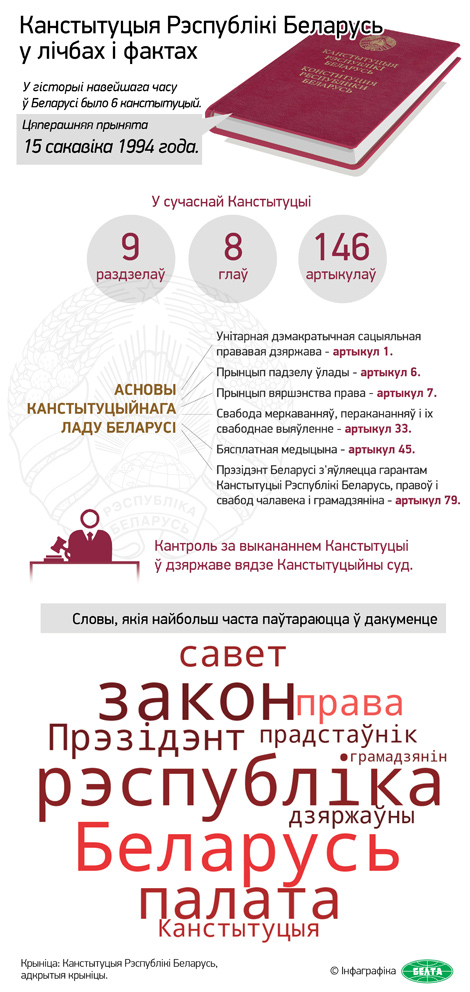 З Асноўным Законам, які замацаваў важнейшыя прынцыпы ўладкавання грамадства і дзяржавы, звязана рэалізацыя такіх каштоўнасцей, як законнасць, роўнасць, справядлівасць і народаўладдзе.