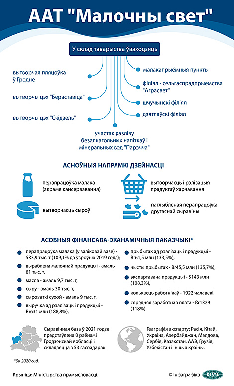 ААТ "Малочны свет" - гэта былы Гродзенскі гарадскі малочны камбінат. Ён быў арганізаваны ў 1938 годзе, у лістападзе 1996-га пераўтвораны ў ААТ "Гродна Малкамбінат", а ў 2007-м па рашэнні адміністрацыі СЭЗ "Гроднаінвест" перайменаваны ў ААТ "Малочны свет". Больш за 91 працэнт акцый прадпрыемства належыць дзяржаве.