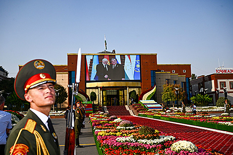 У аэрапорце Душанбэ Аляксандра Лукашэнку сустракалі прэм'ер-міністр Таджыкістана Кахір Расулзада, міністр замежных спраў Беларусі Максім Рыжанкоў, Пасол Беларусі ў Таджыкістане Віктар Дзенісенка і іншыя афіцыйныя асобы.