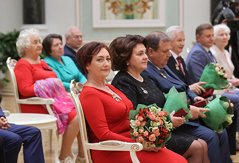 2 ліпеня, Мінск /Кар. БЕЛТА/. Прэзідэнт Беларусі Аляксандр Лукашэнка ўручыў дзяржаўныя ўзнагароды заслужаным дзеячам розных сфер. Урачыстая цырымонія адбылася сёння ў Палацы Незалежнасці, перадае карэспандэнт БЕЛТА.