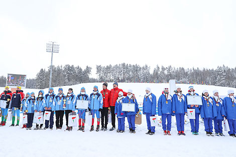 Узнагароды юным спартсменам таксама ўручалі алімпійскія чэмпіёны, члены нацыянальнай каманды Беларусі па біятлоне Дар'я Домрачава, Ірына Крыўко і Дзінара Алімбекава.