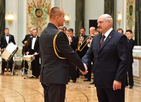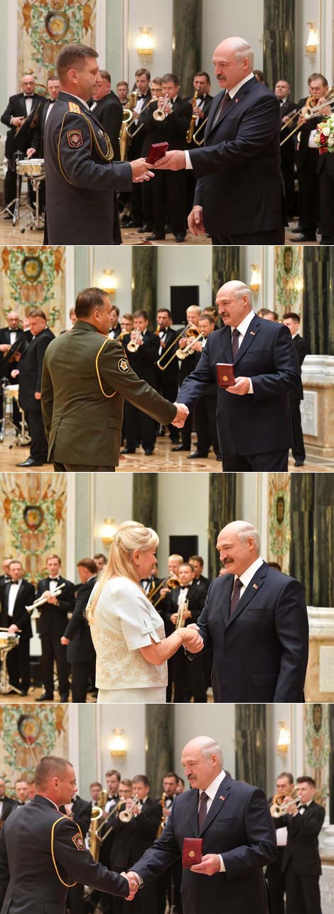 "Уручэнне ўзнагарод напярэдадні галоўнага дзяржаўнага свята асабліва сімвалічна і знамянальна. Паколькі, гаворачы аб незалежнасці краіны, мы маем на ўвазе народ. Наш суверэнітэт - гэта людзі, якія штодзённа шчыра і сумленна выконваюць сваю работу: захоўваюць мір і парадак на роднай зямлі, застаючыся ўзорам мужнасці і вернасці службоваму абавязку; умацоўваючы эканамічную стабільнасць, працуюць на вытворчасцях, будоўлях, у навуковых лабараторыях, на фермах і палях; забяспечваюць сацыяльную падтрымку насельніцтва, працуючы ў сферах аховы здароўя, адукацыі, у грамадскіх арганізацыях; фарміруюць імідж краіны сваімі спартыўнымі перамогамі і дасягненнямі", - падкрэсліў беларускі лідар.