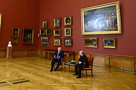 27 снежня, Санкт-Пецярбург /Кар. БЕЛТА/. Прэзідэнт Беларусі Аляксандр Лукашэнка заявіў, што ў ходзе нефармальнай сустрэчы з Прэзідэнтам Расіі Уладзімірам Пуціным удалося ўзгадніць многія пытанні, на што ў некаторых дзяржаў часам ідуць гады. Аб гэтым беларускі лідар заявіў на сустрэчы з расійскім калегам у Санкт-Пецярбургу ў сценах Рускага музея, перадае карэспандэнт БЕЛТА.
