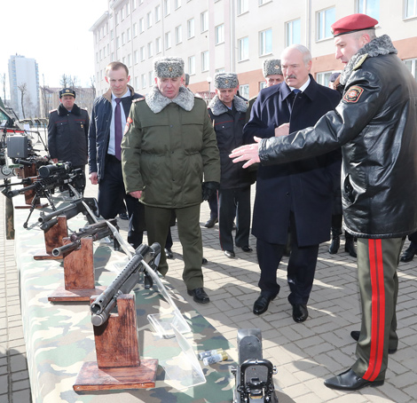 Аляксандр Лукашэнка таксама азнаёміўся з узорамі ваеннай тэхнікі, узбраення і спецыяльных сродкаў унутраных войскаў. Увазе Прэзідэнта ў прыватнасці былі прадстаўлены бронеаўтамабілі, спецыяльная тэхніка, аўтобусы і легкавыя аўтамабілі, стралковая зброя, прадметы экіпіроўкі ваеннаслужачых.