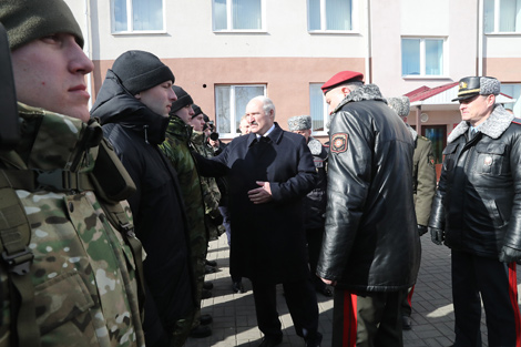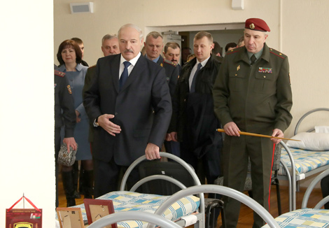 16 сакавіка, Мінск /Уладзімір Мацвееў - БЕЛТА/. Прэзідэнт Беларусі Аляксандр Лукашэнка напярэдадні 100-годдзя ўнутраных войскаў МУС у сталіцы наведаў вайсковую часць 5448, перадае карэспандэнт БЕЛТА.