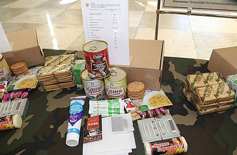 Затым Прэзідэнт накіраваўся ў памяшканне сталовай, дзе яму расказалі, чым кормяць ваеннаслужачых на абедзе і што ўваходзіць у склад сухіх пайкоў: пячэнне, сок, тушонка, кашы, рыбныя кансервы, гарохавы суп, шакалад, цукеркі, паштэт, згушчанае малако і кава.
