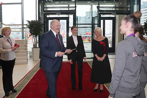 Кіраўнік дзяржавы разам з алімпійскімі чэмпіёнкамі - беларускай Марынай Лобач і расіянкай Алінай Кабаевай, а таксама са старшынёй Беларускай асацыяцыі гімнастыкі Аленай Скрыпель і мэрам Мінска Андрэем Шорцам перарэзалі сімвалічную стужку ў фае цэнтра, затым сімвалічны ключ быў перададзены членам нацыянальнай каманды Беларусі па мастацкай гімнастыцы.