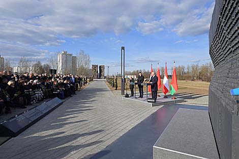 Гэты помнік - напамін аб тым, як далёка могуць завесці агрэсія, якая бярэ верх над разважлівасцю, празмерныя палітычныя амбіцыі, антынавуковыя і антычалавечыя тэорыі, падкрэсліў кіраўнік дзяржавы.