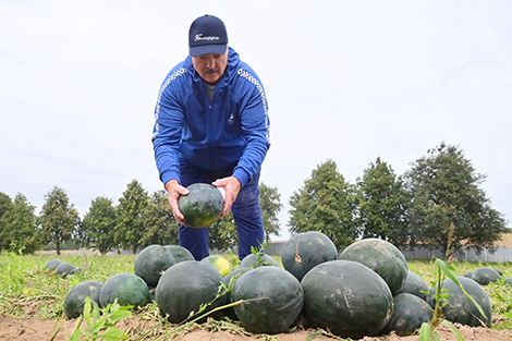Прэзідэнт нагадаў, што і на сваім падворку займаецца вырошчваннем часам неўласцівых для Беларусі культур, як кавуны. Нарэшце, ёсць шмат і традыцыйных культур, як бульба, а ўраджай раздаюць людзям у розныя ўстановы. "Мы атрымалі ў гэтым годзе пад 300 т бульбы на маленькім участку. Мы таксама аддалі. У манастыр сёння-заўтра адвязуць. Аддаём людзям. Некаму насенне, паколькі гэта новыя сарты. Я асабіста нават займаюся гэтым для душы, шукаю новыя сарты", - расказаў кіраўнік дзяржавы.