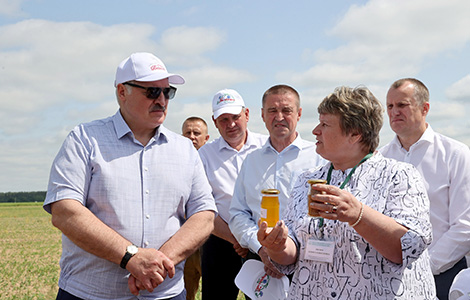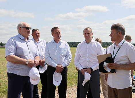 Кіраўнік дзяржавы пасля прыбыцця на поле, дзе ў якасці эксперыменту пасеяны розныя сарты азімага ячменю, падкрэсліў, што сёння гістарычны і пераломны момант у сельскай гаспадарцы. Прэзідэнт адзначыў, што вырас у гэтых мясцінах на стыку Магілёўскай і Віцебскай абласцей і тут жа апрабуе розныя новыя падыходы ў сельскай гаспадарцы. "Вось і стала поле Прэзідэнта. Сёння гістарычны момант. Калі нехта думае, што мы тут сустрэліся для таго, каб чарговы раз пагаварыць і паказацца, спецыялісты зразумеюць, што гэта не так", - сказаў ён.