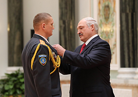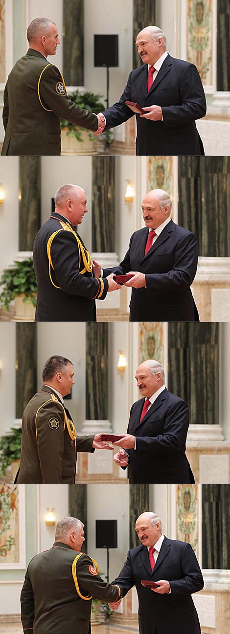 Прэзідэнт узнагародзіў ордэнам Пашаны генеральнага дырэктара дзяржаўнага навукова-вытворчага аб'яднання "Хімічны сінтэз і біятэхналогіі" - дырэктара Інстытута мікрабіялогіі НАН Беларусі Эмілію Каліміец і медалём "За адвагу" старшага оперупаўнаважанага па асабліва важных справах спецпадраздзялення па барацьбе з тэрарызмам "Алмаз" МУС Паўла Шчарбакова. Кіраўнік дзяржавы таксама ўручыў медалі "За адзнаку ў воінскай службе", "За працоўныя заслугі", "За службу Радзіме" ІІІ ступені і "За выратаванае жыццё".