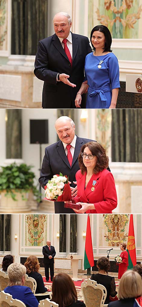 У ліку ўдастоеных медаля Францыска Скарыны аказаліся галоўны рэдактар часопіса "Наука и инновации" Жанна Камарова, вядучы майстар сцэны Беларускага дзяржаўнага тэатра лялек Святлана Цімохіна. Сярод узнагароджаных ордэнам Маці - настаўніца замежнай мовы мінскай сярэдняй школы нумар 136 Таццяна Казлова, галоўны спецыяліст галоўнага ўпраўлення бухгалтарскага ўліку і справаздачнасці Нацыянальнага банка Алена Коптур, дызайнер ТАА "ОМА" Юлія Рыжая.