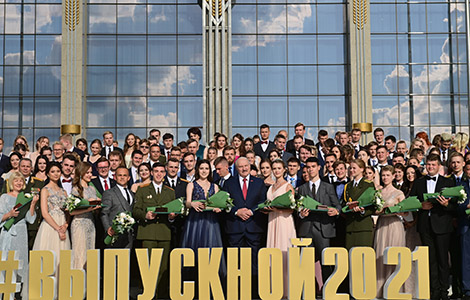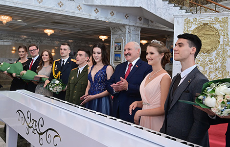"Гледзячы сёння на вас, прыгожых, маладых і паспяховых ужо, я адчуваю гонар за Беларусь, - звярнуўся кіраўнік дзяржавы да выпускнікоў. - За тых, хто ствараў незалежную краіну, у якой нашы дзеці атрымліваюць дастойную адукацыю, а лепшыя з лепшых адзначаюць свае першыя поспехі на такім высокім узроўні".