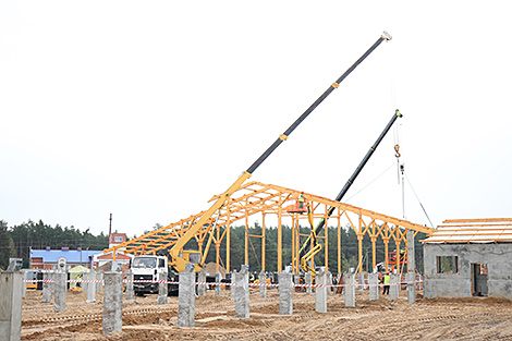 4 кастрычніка, Ляскавічы /Кар. БЕЛТА/. Прэзідэнту Беларусі Аляксандру Лукашэнку ў ходзе рабочай паездкі ў Петрыкаўскі раён Гомельскай вобласці прадставілі праект доследнага будаўніцтва малочнатаварнага комплексу з драўляных канструкцый, якія выраблены з мясцовай сыравіны, перадае карэспандэнт БЕЛТА.