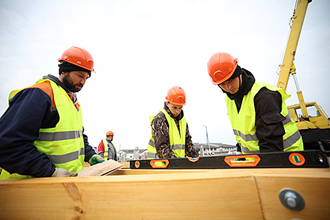 Кіраўнік дзяржавы пацікавіўся, ці ёсць прэтэнзіі да будаўнікоў. "Пакуль ідзём у графіку", - далажыў кіраўнік спраў Прэзідэнта Юрый Назараў.