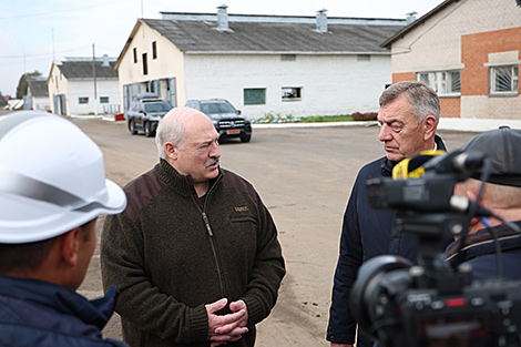 Прэзідэнту далажылі аб планах па развіцці малочнатаварнага комплексу. Тут значна павялічыцца дойны статак і будуць створаны ўсе сучасныя ўмовы для эфектыўнага ўтрымання жывёл. "Тут будзе поўнасцю цыкл", - расказаў дырэктар ААТ "Агра-Ляскавічы" Юрый Кастранкоў.