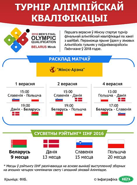 Матчы другога тура ў групе D пройдуць 2 верасня. У 15.00 на лядовай пляцоўцы "Мінск-Арэны" адбудзецца стартавае ўкідванне ў гульні Славенія - Данія, а ў 19.00 сустрэнуцца зборныя Беларусі і Польшчы. Пуцёўку на Алімпіяду ў Пхёнчхан атрымае толькі пераможца квартэта.
