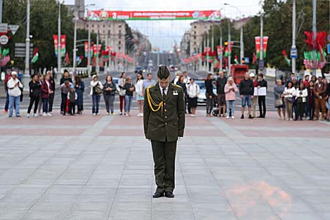 Ушанаваць памяць загінулых у гады Вялікай Айчыннай вайны да Вечнага агню прыйшоў сёння старшыня Мінгарвыканкама Анатоль Сівак.