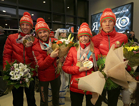 20 сакавіка, Мінск /Кар. БЕЛТА/. Беларускія паралімпійцы вярнуліся з зімовых Гульняў у Пхёнчхане. У Нацыянальным аэрапорце Мінск атлетаў і трэнераў сустракалі родныя і сябры, кіраўніцтва Міністэрства спорту і турызму, Паралімпійскага камітэта Беларусі, перадае карэспандэнт БЕЛТА.
